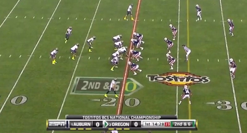 So with Auburn in the seemingly daunting Cover Zero, how will Oregon counteract that defense the next time they show this look?