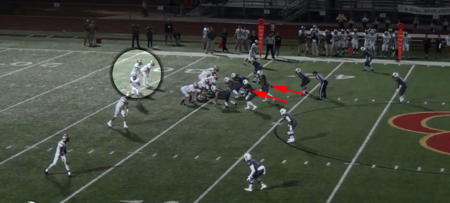 Before the motion man even gets set, Town is changing the protection because of the possible blitz.