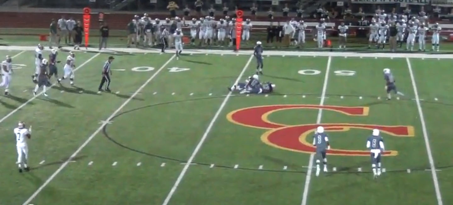 The ball is delivered to the tight end and Town is able to convert the third and long play.