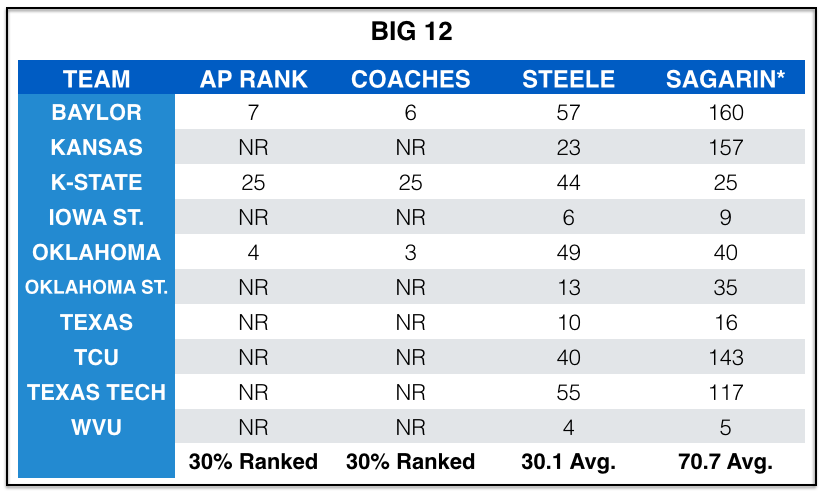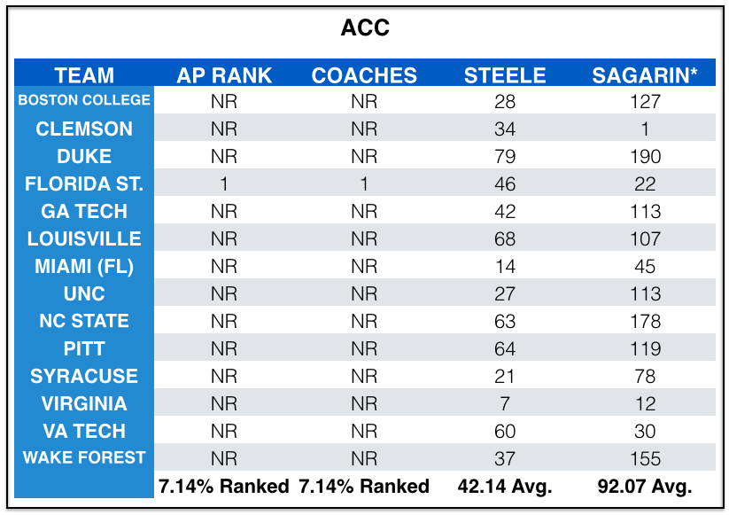 But the same goes for the Southern schools. There are currently eight SEC teams ranked in the AP Top 25, but once conference play begins and there are no more games versus Lamar--things could change as well.