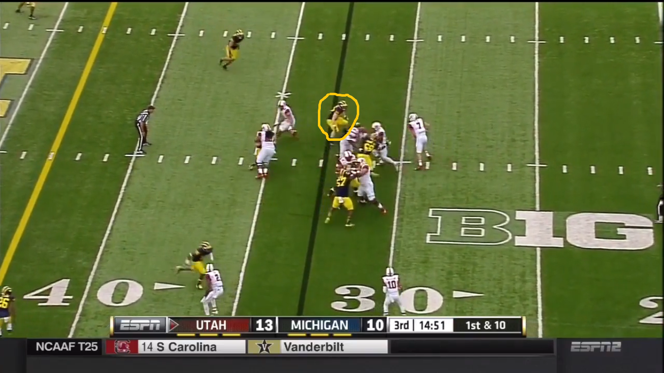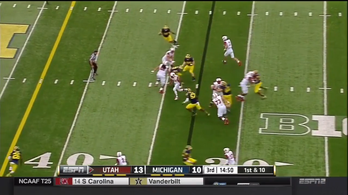 This leads to a 24 yard gain, getting the Utes well into Wolverine territory.