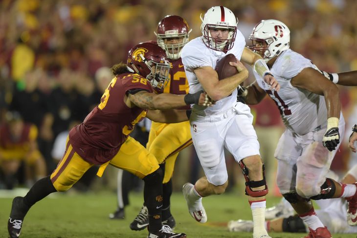 USC in general - Saturday was a demoralizing, demoralizing loss for the USC. The Trojans had everything set up for them to start their run back to prominence with a nice home win, but their defense got shredded by an enigmatic Stanford bunch that put up 6 against Northwestern and 31 against UCF (UCF might be the worst major program in the nation) and their offense failed to control a depleted Stanford front on the ground and had to dink and dunk in the passing game. USC is dead on arrival.